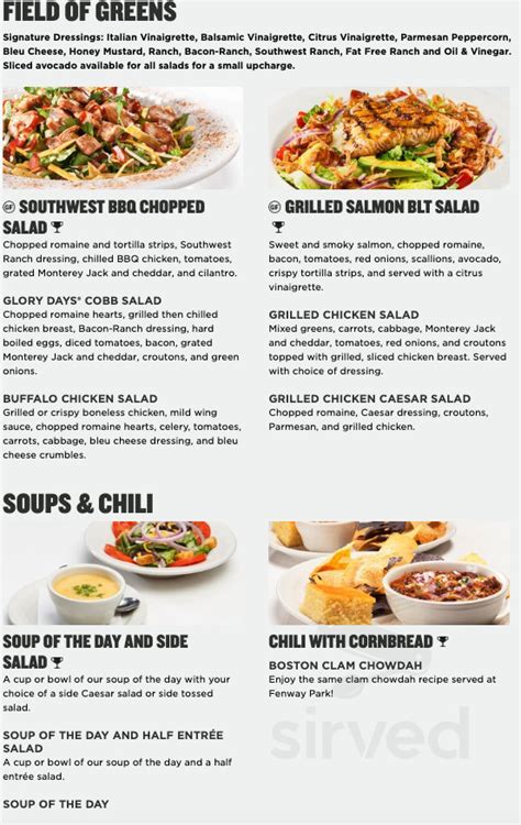 Glory Days Menu Prices Glory Days Grill Menu for Burgers, Sides, Salad from www.allmenuprices.com